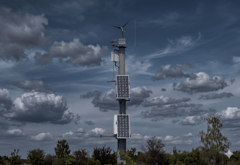 Zasilanie: hybrydowe (panele słoneczne + turbina wiatrowa).